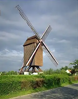 Staakmolen | 1798 | Originally built at Ghent in 1614, moved to Sint-Martens-Latem in 1798. Molenechos (in Dutch) |