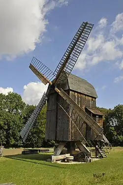 Pölzig Bockwindmühle Incorporated into engine driven mill.