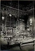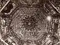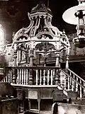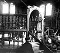 1770[1]: 62 –1913[27] The layered, pitched roof visible in surviving exterior photographs conceals a series of massive trusses from which the great dome was suspended.[28] The roof, which features three well-defined stages, was considered one of the most architecturally complex and interesting of wooden synagogue roofs.[29] The synagogue was enlarged in the nineteenth century by the addition of one story extensions on each side for the use of the women of the community.[28]: 231–2