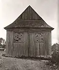 Kaltinėnai, Lithuania, Tauragė 1938[15] Architect: Kazys Kralikas. Wooden synagogue with attached rabbi apartment. Used as a prayer house until 1941, after 1945 barn, vacant since 1990.[16]