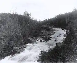 At the very end of it course, and after crossing the boulevard Ducharme (in the southern part of the city of La Tuque), the water of the Little Bostonnais River flows in the falls of a height of 30 m. The city of La Tuque erected a municipal park around the falls. Using lookouts and hiking trails, waterfalls are of great beauty for visitors. In summer, they can use the picnic areas, practice cycling (12 km), go hiking (5 km), observe the flora, canoe, use the playground and participate in guided tours in French. In winter, visitors can make slides, cross-country skiing, ice skating, snowmobiling ... Visitors can also visit the Centre and the circuit Félix-Leclerc.[1]