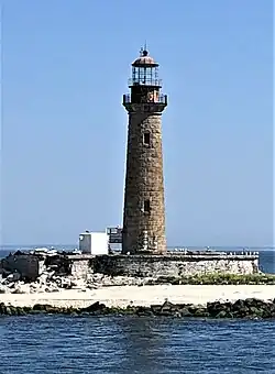 Little Gull Island Light is a lighthouse on Little Gull Island, a small island in Long Island Sound, located approximately 0.4 miles (0.6 km) northeast of Great Gull Island. Both islands are located in the Town of Southold, in Suffolk County, New York, and lie roughly midway between Plum Island and Fishers Island. Little Gull Island is approximately 4.6 miles (7.4 km) southwest of Fishers Island and the channel of water between them is the main entrance to Long Island Sound, known as "The Race".[1][2][3]
