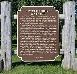 The Little House Wayside is a 3-acre (1.2 ha) rest area located in Pepin County, Wisconsin. It is approximately seven miles (11 km) northwest of Pepin, Wisconsin located in the town of Stockholm and approximately one mile southeast of Lund on County Highway CC (formerly Wisconsin Highway 183). The Wayside is located on the plot where Laura Ingalls Wilder was born on February 7, 1867.[1]