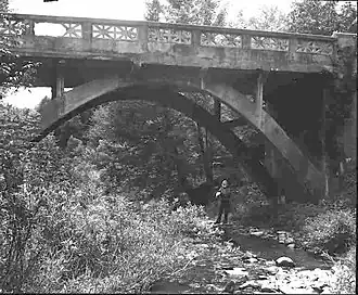 A prestressed box beam bridge was built over Little Pine Creek in Columbia County in 1998. It carries State Route 1026 and is 66.9 feet (20.4 m) long.[8] A masonry arch bridge was built over the creek in Luzerne County in 1927. It carries T-486 (Valley View Road) and is 21.0 feet (6.4 m) long.[9] A bridge in Fishing Creek Township was built over the creek in 1915.[10]