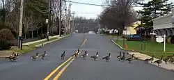 Canada Geese cross street in Little Silver, New Jersey
