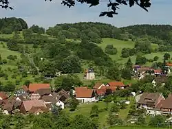 The Little Thuringian Forest (German: Kleiner Thüringer Wald)[1] is a region of mountains and hills that lies southwest of Suhl and northwest of Schleusingen, and extends as far as an imaginary line from Schmeheim via Bischofrod and Gethles to Rappelsdorf. Its length is about 11 km (6.8 mi), its width varies between 1 km (0.62 mi) and 2 km (1.2 mi).[2][3] Its name is not to be understood in an orographic or geographic sense, but is due to the marked similarity of its bedrock to that of the Thuringian Forest to the north of it.[4]
