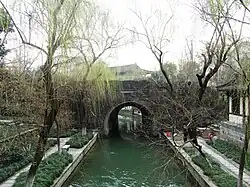 The original temple dates back to the Southern Song dynasty (1127–1279).[4] It historically known as Tonghui Bridge (通惠桥) in the Yuan dynasty (1271–1368), Jinyun Bridge (锦云桥) in the Ming dynasty (1368–1644), and reverted to its former name of Liubu Bridge in the Qing dynasty (1644–1911).[4] The current bridge was rebuilt in 1984.[1] In July 2000, it has been designated as a municipal-level cultural heritage site by the Government of Hangzhou.