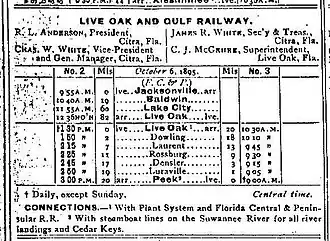 | Live Oak & Gulf Railway | ||||||||||||||||||||||||||||||||||||||||||||||||||||||||||||||||||||