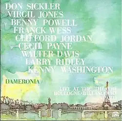 Live at the Theatre Boulogne-Billancourt Paris is a live album by Dameronia, a jazz ensemble founded by Don Sickler and Philly Joe Jones that performed the compositions and arrangements of Tadd Dameron. It was recorded on May 30, 1989, roughly four years after Jones's death, in a suburb of Paris, and was released in 1994 by the Soul Note label. The ensemble is conducted by Sickler, who also appears on trumpet, and features saxophonists Clifford Jordan, Cecil Payne, and Frank Wess, trumpeter Virgil Jones, trombonist Benny Powell, pianist Walter Davis Jr., double bassist Larry Ridley, and drummer Kenny Washington.[1][2][3]