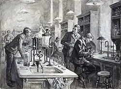 Sir Ronald Ross, C.S. Sherrington, and R.W. Boyce working together in a laboratory at the LTSM in 1899