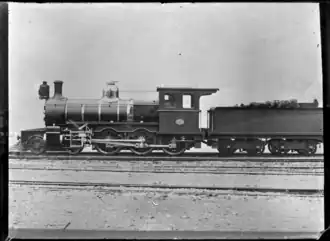 The first locomotive in New Zealand was built by Slaughter & Co in Bristol,[1] arrived at Ferrymead[2] in May 1863[3] to work on Canterbury Provincial Railways' 5 ft 3 in gauge. It was withdrawn in 1876.[4] Lady Barkly, in use on Invercargill's jetty in August 1863 during construction of the Bluff branch, was another early example of a steam locomotive operating in New Zealand. [5]