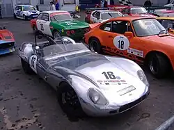 The Lola Mk1 is the first sports racing car made by Lola, under the leadership and guidance of Eric Broadley, in 1958. The body was designed and developed by chief stylist Maurice Gomm, made out of a steel or fiberglass tubular spaceframe chassis, covered in a low-profile, sleek, aluminum skin. The 80 hp (60 kW), 1,098 cc (67.0 cu in), Coventry Climax FWA four-cylinder engine was designed by Harry Mundy and Walter Hassan. The car used a 4-speed manual transmission, and was lightweight, weighing in at a mere 812–840 lb (368–381 kg). It also notably won its class at the 1960 12 Hours of Sebring, being driven by Charles Vögele and Peter Ashdown. At least 32 cars were known to have been built, but the actual number is believed to be between 38 and 42.[1][2][3][4][5][6][7]