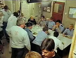 • Sidney Tate (James Marcus; movie, series 1–3) (also Temporary Assistant Divisional Officer (ADO)) – Tate was a fatherly figure for the watch. He was married to Nancy (a LFB control officer) and their only child had died years earlier. They occasionally fostered a disabled child, Paul, from a local foster home at Christmas, ultimately adopting him. Having been in the brigade for many years, he saw himself as old-fashioned and was sometimes at odds with modern regulations. The new ADO, Scase, did not approve of Tate's more pragmatic methods, especially when Tate defied his orders at a 'shout'. Tate was generally quiet and steady: he built matchstick models during down time (especially one of Alexandra Palace, which LFB had failed to save in one of the worst London fires in modern history), put HP Sauce on virtually all of his food, and was more than a bit rattled by having a woman assigned to his station. However, Tate was capable of old-fashioned discipline: a prank against Josie, and a fistfight between Malcolm and George, both garnered volcanic eruptions. Tate was forced to retire from the service at the end of series 3 after failing a routine medical. Although the character never appeared again, Tate was referred to a few times in the subsequent series, particularly by Sicknote and Bayleaf, who wondered what he would make of the progress the brigade was making. His replacement, SO Georgiadis, even once remarked: "I am not 'Good Old Uncle Sid'!"