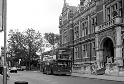 From 16 October 1957 it ran between Purley High Street and Victoria Embankment. On 23 January 1966, the Sunday service was withdrawn with the exception of a few early morning journeys operated by Thornton Heath garage. On 31 October 1970, these journeys were converted to one-man operation (OMO) using single-deck AEC Swifts, with subsequent conversion to double-deck Daimler Fleetline operation from 23 March 1974.[3]