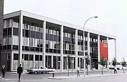 The first CN station was demolished and gave way to two structures, a three-storey building at 205 York Street (now home to the CN Credit Union) completed in 1963[4] and the 10-storey CN Tower Building at 197 York Street built in 1969.[5] The latter building, an International-style structure was closed in 2000 as CN staff dwindled and was imploded at 9:15 a.m., on February 4, 2001.[6] During demolition of the 1969 structure and construction of the present station, train services temporarily reverted to the 1963 station. The old credit union building was incorporated into the current station structure after 2001 and remaining site of the old station became a parking lot. The platform area from the previous stations were retained in the new station.