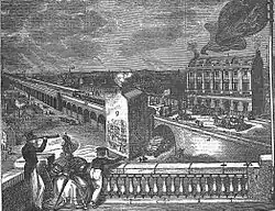 The Royal Commission recommended that no new stations should be built in the West End of London or the city, and that the New Road should be the northern boundary of railway development.[16][19] This created competition between the individual railway companies, who could promote new terminals with individual financial backers.[20] Exemptions were made for the Great Eastern Railway and North London Railway with Liverpool Street and Broad Street respectively.[21] The only main railway line built across Central London was the London, Chatham and Dover Railway (LCDR) line connecting Blackfriars to Farringdon via Snow Hill Tunnel in 1866.[22]