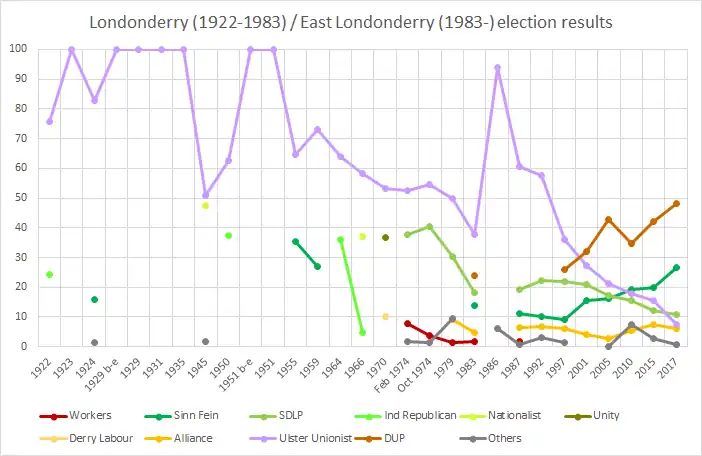 From its inception, Londonderry had a unionist majority, though by the 1970s the nationalist vote was approaching 40% in some elections.