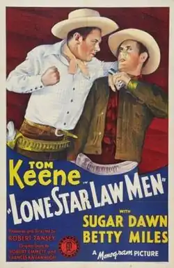 Lone Star Law Men is a 1941 American western film directed by Robert Emmett Tansey and written by Robert Emmett Tansey and Frances Kavanaugh. The film stars Tom Keene, Frank Yaconelli, Betty Miles, Sugar Dawn, Gene Alsace and Glenn Strange. The film was released on December 5, 1941, by Monogram Pictures.[1][2][3]