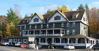 Long Lake is part of the 1.1 million acres (4,500 km2) acquired from the Mohawk nation as part of the 1771 Totten and Crossfield Purchase.[8] Long Lake is a glacial widening of the Raquette River and is part of the water route that connects the Fulton Chain Lakes with the Saint Lawrence River drainage. This route was frequently traveled by guideboat in the mid-late 19th century. At that time, "a typical trip might start at the Saranacs from which a party could make its way to the Raquette River via Indian Carry and Stoney Creek."[9] The trip continued "via the lakes accessible from it— Long, Raquette, Forked, Blue and Tupper."[9] Settled by the 1830s, Long Lake was isolated, except by water, until William Seward Webb's Mohawk and Malone Railway was built through what was then known as Long Lake West in 1892. Long Lake and Long Lake West were connected by a stage route. The Mohawk & Malone Railway was taken over by the New York Central and Hudson River Railroad in 1894, and was merged into the New York Central Railroad in 1913. Passenger rail service on the NYC ended on April 24, 1965. The town of Long Lake West was later renamed Sabattis, after Peter Sabattis and his son Mitchell Sabattis, the Abenaki Indian guides who came down from Canada and first settled in this area, followed by a long line of their offspring and family.