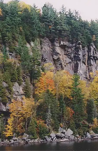 As exceptional natural site, the Long Lake cliff, with a height of 65 to 100 meters, runs along the eastern shore of Long Lake for four km.[3]