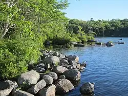 Long Lake is a provincial park controlled by the Department of Natural Resources and Renewables of the Government of Nova Scotia (formerly called the Department of Lands and Forestry).[1] The park is not as well known as some other local public spaces despite its proximity to central Halifax and its large size, rivalling that of the Halifax peninsula. In 2003, the Department of Natural Resources entered into consultation with the Long Lake Provincial Park Association on the development of a park management plan which was completed in 2008 and subsequently adopted for park management purposes. In early 2015 the Long Lake Provincial Park Association started to build accessible walking and cycling trails on the east side of the lake near Northwest Arm Drive (Dunbrack Street) in Spryfield. These were constructed under a formal agreement between the association and the provincial government. There are now approximately 5.5 kilometres (3.4 mi) of wide multi-use trails that lie along the east side of Long Lake, together with a loop around Withrod lake. Benches are installed along the trail and members of the public can have plaques installed on the benches. There is also a parking lot and a washroom across from the Cowie Hill Road. Another parking lot has been added along with a Kayak/Canoe launch at the location of the old pumphouse on Old Sambro Road across from Schnare Street.