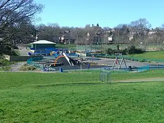 The early 1930s saw the park undergo development of its facilities, with a sports pavilion, two football pitches, bowling green, six tennis courts and toilets being built . Much of the labour for this work was provided by the long term unemployed of the Great Depression who had used up their unemployment insurance. On 3 September 1938, a 125-foot (38-metre) by 40-foot (12-metre) outdoor swimming pool was opened in the park along with a 90-foot (27-metre) by 30-foot (9-metre) children's paddling pool. The pools, which were to become the parks major attractions for many years to come, were paid for by local businessman G.H. Lawrence, a razor blade manufacturer. During World War II part of the park was turned into allotments to allow local people to grow their own food. In the 1960s, a nine-hole pitch and putt golf course was constructed in the park along with a putting green.[2]