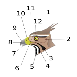 In ornithology, the lore is the region between the eye and bill on the side of a bird's head.[1] This region is sometimes featherless, and the skin may be tinted, as in many species of the cormorant family.[2] This area, which is directly in front of the eye, features a "loral stripe" in many bird species including the red-capped plover.