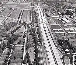 The entrance to the cemetery is located at 950 South Sepulveda Boulevard (90049) at Constitution Avenue, near the intersection of Sepulveda Boulevard and Wilshire Boulevard. It is adjacent to Westwood, Los Angeles and UCLA along the east across Veteran Avenue, and the main Sawtelle Veterans Home campus across the San Diego Freeway (405) along the west. The cemetery was dedicated on May 22, 1889.[1] It is directly connected to the central Veterans Home facilities by Constitution Avenue's underpass below freeway.