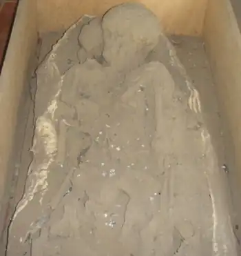 Placeres Double Burial. Detail of remains of child and mother.