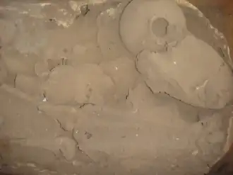 At the laboratory remains of human bones were found inside, which corresponds to a child. Probably the infant relatives deposited a small vase as offering, the dirt containing the urn still had the mold of the small vessel that was extracted and stolen by vandals.