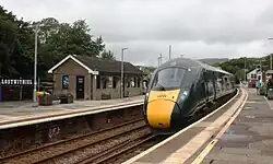 Lostwithiel railway station (Cornish: Lostwydhyel) serves the town of Lostwithiel in Cornwall, England. It is 277 miles 36 chains (277.45 mi; 446.5 km) from the zero point at London Paddington measured via Box and Plymouth Millbay.[1] Great Western Railway operates the station along with every other station in Cornwall.