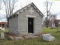 While riding back towards the city, General Montcalm was hit in the back by a musket shot. Assisted by three soldiers, he regained the city, where he was taken before a surgeon, who announced Montcalm would not live through the night. During the afternoon, the general drew on his last reserves of strength and signed his last official act as commander of the French army in Canada.[18] In a letter addressed to General Wolfe, who unbeknownst to him had also fallen in battle, Montcalm attempted to surrender the city, despite the fact he did not hold the authority to do so. He died at around 5:00 am on 14 September 1759. At 8:00 am, he was buried in a shell hole under the choir of the Ursuline church.[18] On October 11, 2001, the remains of Montcalm were removed from the Ursuline convent and placed into a newly built mausoleum in the cemetery of the Hôpital-Général de Québec.