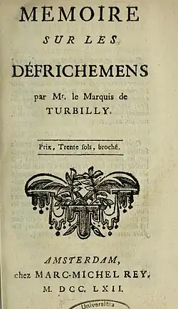 • Marquis de Turbilly. Mémoire sur les défrichements, Paris: chez la Veuve d'Houry, 1760
