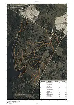 The Indiangrass Blioblitz Trail is a 1.1 km loop trail, which takes an average of 16 minutes to complete. It has a 20 m elevation gain and serves as a habitat restoration area. As the term Bioblitz suggests, the trails invites its visitors to find and identify as many species as possible.[31]