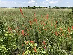 The sanctuary has two invasive grass species, Bothriochloa ischaemum and Sorghum halepense. The advanced colonization of Bothriochloa ischaemum has been identified as impacting native biodiversity.[26] Invasive species are non-native organisms that, when introduced, can cause serious damage to the environment, economy or human health. These species tend to spread rapidly and can displace native plants, disrupting natural ecosystems. For example, they can interfere with processes like fire patterns, nutrient cycling and water systems. On many occasions, plants invasions are driven by previous disturbances to the environment.[27]