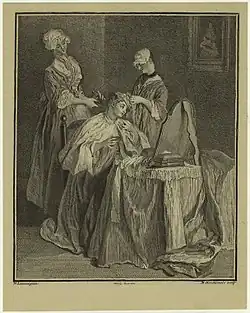 - ^ Woman having her hair styled, eighteenth century engraved by Louise-Madeleine Horthemels after Nicolas Lancret, line engraving, at the web site of the New York Public Library digital collection (accessed 14 February 2008)