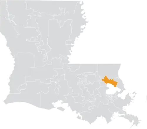The district overlaps with Louisiana's 1st and 5th congressional districts, and with the 73rd, 74th, 77th, 86th, 89th, and 104th districts of the Louisiana House of Representatives.[4]