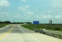 Paving of the route continued after the 1955 renumbering, extending south from Forked Island and west from Cameron. Most of the work was completed by the mid-1960s.[47][48] The route on the east side of Pecan Island was shortened slightly by following the back ridge rather than the established road along the front ridge.[17][18] The last section of gravel road, located between Grand Chenier and Pecan Island, was hard surfaced around 1967.[48][49] The last ferry service on the Vermilion Parish portion of the highway was discontinued when a bridge was completed across the Schooner Bayou Canal (or Old Intracoastal Waterway) in 1965.[50] In 1976, the original movable bridge across the Intracoastal Waterway at Forked Island was replaced with the current high-level fixed span.[51] The location of the new bridge also allowed the straightening of the route through the area.[52][53] The most recent bridge replacement occurred in 2009 when a new fixed bridge was built spanning the Sabine Lake at the state line. The original swing bridge had been damaged by Hurricanes Rita and Ike and was replaced with the help of federal relief funds.[44]
