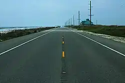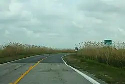 When Route 292 was created in 1928, it almost entirely existed on paper only. The small communities along its path were located along natural ridges in the marsh locally known as "cheniers."[a] Some of these ridges existed right along the shore of the Gulf of Mexico while others were set back in the marsh as remnants of the changing shoreline at various points in history.[16] These narrow linear islands in the marsh would have to be connected by long stretches of man-made roadway embankment to create a continuous route through the area. Additionally, a number of waterways would have to be crossed by either bridge or ferry. After three decades of construction and improvement, a continuous surfaced route was finally achieved between 1958 and 1960.[17][18]