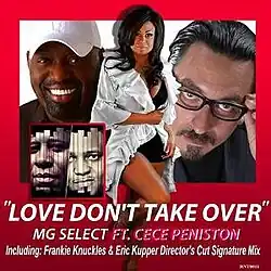 "Love Don't Take Over" is a 2014 song by house producers George Jackson and Marc Mitchell under their common alias MG Select, featuring lead vocals by CeCe Peniston. The single was released as a digital single through Ruff N' Tuff Records on September 16, 2014.