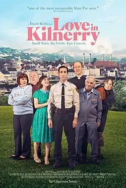 Love in Kilnerry is a 2022 American romantic comedy film written, produced, and directed by Daniel Keith in his directorial debut. The film stars Keith, Kathy Searle, Roger Hendricks Simon, James Patrick Nelson, Sybil Lines, Sheila Stasack, and Tony Triano.[1][6][3][7] The first draft edit of the film played to peers in the US on October 18, 2019, at the New Hampshire Film Festival and the San Diego International Film Festival simultaneously.[8] The film went through two more years of edits and reshoots before being completed in 2021. Archway Pictures released the film theatrically in North America in limited cities starting April 8 and a wide release on May 13, 2022.