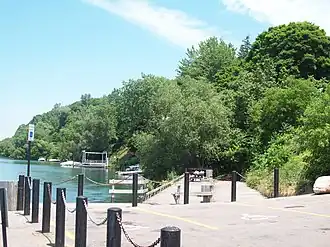 Lower Landing Archeological District is a historic archeological site located at Lewiston in Niagara County, New York. The district comprises the area that served as the western end of the portage for goods around Niagara Falls. It is located on east bank of the Niagara River.