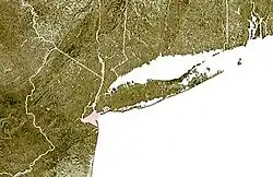Lower New York Bay is a section of New York Bay south of the Narrows (the strait between Staten Island and Brooklyn). The eastern end of the Bay is marked by two spits of land, Sandy Hook, New Jersey, and Rockaway, Queens. The waterway between the spits connects the Bay to the Atlantic Ocean at the New York Bight. Traversing the floor of the Bay southeasterly from the Narrows to the Bight and beyond is Hudson Canyon.
