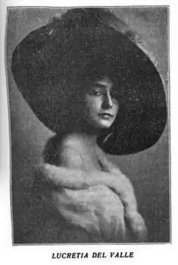 Beginning in 1912,[2] Lucretia del Valle starred as Doña Josefa Yorba[3] in about 850 shows of a popular outdoor pageant at Mission San Gabriel, The Mission Play.[4] A large painting of del Valle in this role, Guy Rose's The Leading Lady (1914), hangs at the San Diego History Center, in Balboa Park.[5] Also in 1912, she appeared in The Landslide, a contemporary drama by Austin Adams, which ran in Los Angeles.[6][7]