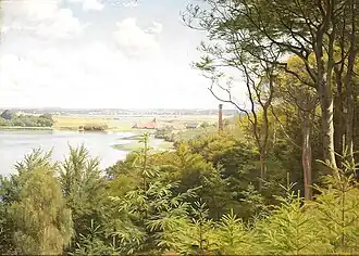 While there, he attended classes taught by P.C. Skovgaard at the Royal Danish Academy of Fine Arts, but was never formally admitted.[2] This was the occasion, however, for making the acquaintance of Godfred Christensen, who aroused his interest in landscape painting.