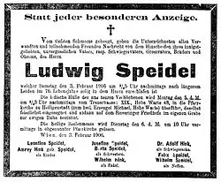 Speidel died in Vienna at the age of 75. He is buried in a grave dedicated to him in the Sieveringer Friedhof.