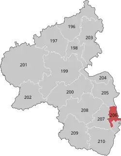 Ludwigshafen/Frankenthal is an electoral constituency (German: Wahlkreis) represented in the Bundestag. It elects one member via first-past-the-post voting. Under the current constituency numbering system, it is designated as constituency 206. It is located in southeastern Rhineland-Palatinate, comprising the cities of Ludwigshafen and Frankenthal and the northern part of the Rhein-Pfalz-Kreis district.[1]