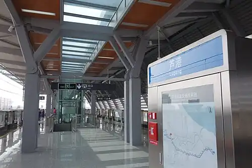 Lugang Station (simplified Chinese: 芦港站; traditional Chinese: 蘆港站; pinyin: Lúgǎng Zhàn) is a station on Line 1 of the Ningbo Rail Transit that started operations on 30 May 2014. It is situated over Wangchun Road (Chinese: 望春路) in Haishu District of Ningbo City, Zhejiang Province, eastern China.[1]