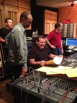 Luis Bonilla (seated) producing Mists: Charles Ives for Jazz Orchestra, April 2014