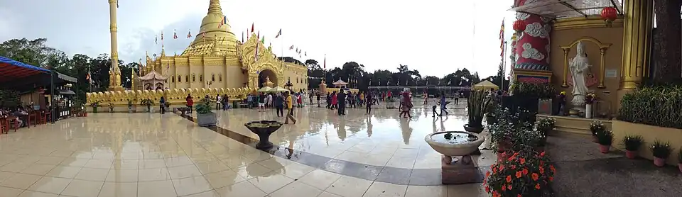 Lumbini Natural Park (Indonesian: Taman Alam Lumbini) is a Buddhist temple located at Desa Dolat Rayat, Berastagi in North Sumatra, Indonesia. It was inaugurated with a great ceremony in October 2010. The ceremony was attended by more than 1,300 monks and more than 200 lay people from around the world. Taman Alam Lumbini is a replica of Shwedagon Pagoda in Yangon, Myanmar. The architecture is similar to a Myanmar pagoda, covered in gold. It hosts an elephant statue and the door appears like a Burmese craft.[1]